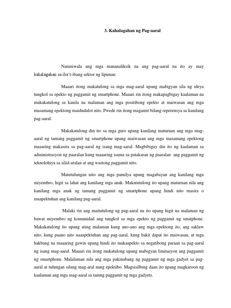 Kailangan tuwirang makapag-ambag ito ng mahalagang kabatiran at dagdag na kaalaman para sa nakaraan ngayon at hinaharap. 25062017 Nagsusulat ng mga reporma at mga karapatang pantao ang nasa Senado at nilalagdaan ng ating Pangulo upang mapabuti ang ating lipunan. Kahalagahan ng pag-aaral - Ano ang magiging kontribusyon ng inyong pananaliksik sa sarili kapwa lipunan pamahalaan at bayan.
